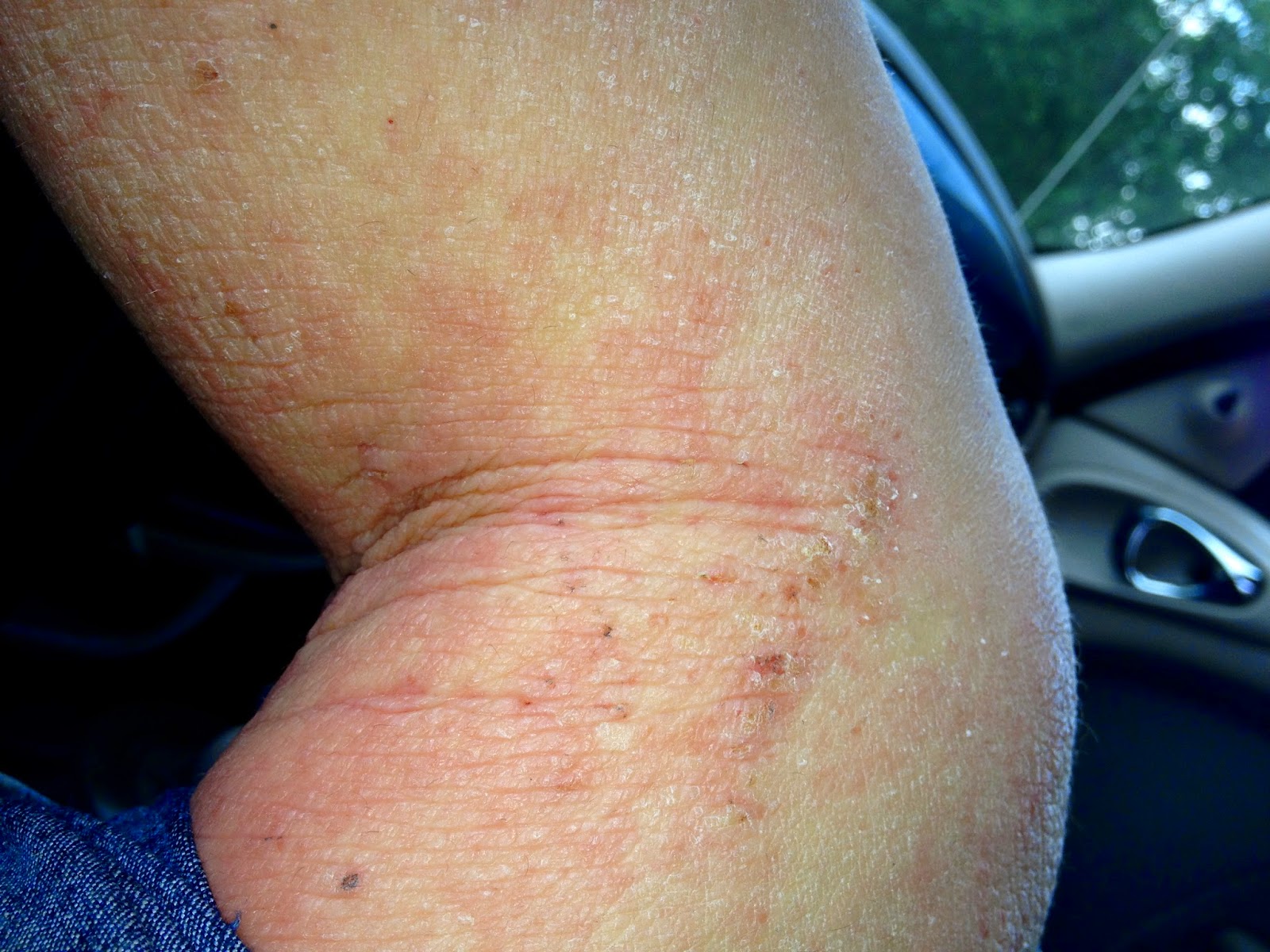 There's lots of big gashes on the creases of my neck where my nails catch when I scratch, as well as "my beard" (the chin area) which is what Ian calls it.